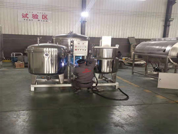 果脯浸糖機器真空浸糖鍋組結構部件主要包括真空滲透罐主罐、料液循環(huán)泵、真空泵、電控系統(tǒng)、 管路系統(tǒng)。我公司可根據(jù)用戶的使用環(huán)境的不同,設計制作為蒸汽加熱形式(適用于有蒸汽熱源的用戶)??筛鶕?jù)用戶特殊要求加配自動化控制元素。用戶可以單獨選購滲透罐主罐,也可選購設備成套機組···